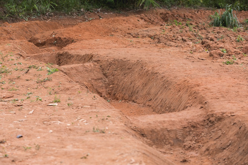 การขุดร่องน้ําในที่ดิน กระจายความชุ่มชื้นไปทั่วบริเวณพื้นที่เพาะปลูก