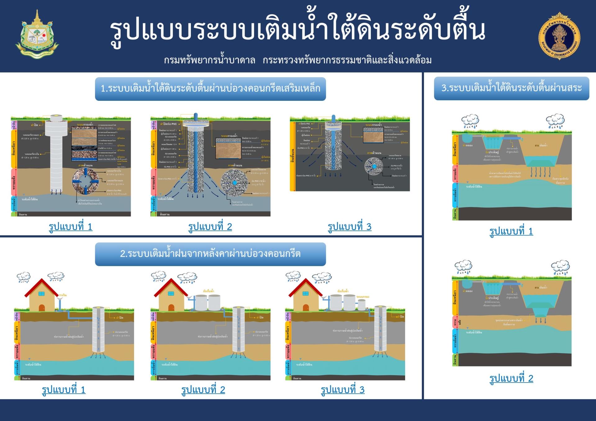ระบบการเติมน้ำใต้ดินระดับตื้น มีดังนี้