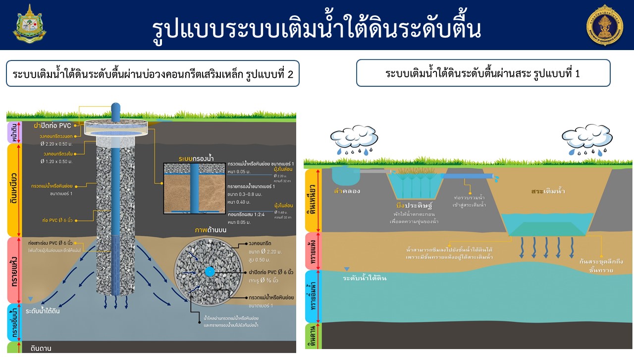 ธนาคารน้ำใต้ดินมี 2 แบบ คือ ระบบเปิด และระบบปิด