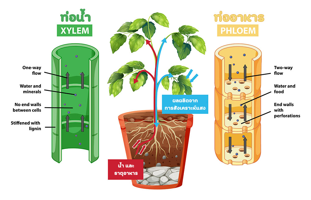 ในพืชมีระบบท่อลำเลียงหลัก 2 ประเภท ที่ทำหน้าที่แตกต่างกัน ดังนี้: