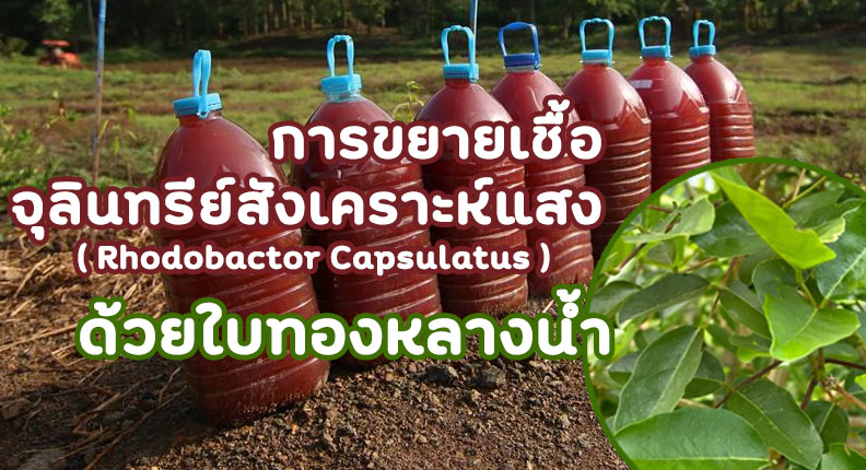 การขยายเชื้อจุลินทรีย์สังเคราะห์แสงด้วยใบทองหลางน้ำเป็นวิธีที่ได้รับความนิยม เนื่องจากทำได้ง่าย ต้นทุนต่ำ และได้จุลินทรีย์สายพันธุ์ที่ดี (Rhodobactor Capsulatus) ซึ่งแตกต่างจากการขยายเชื้อด้วยวิธีอื่น ๆ