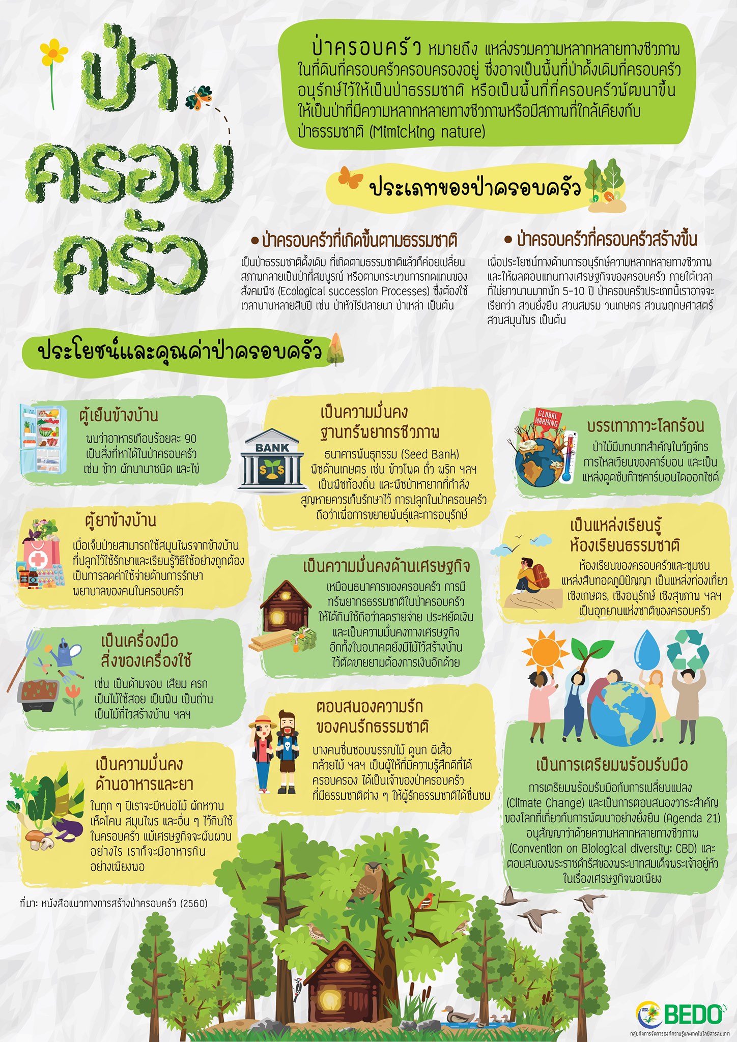 - เป็นแหล่งเรียนรู้และกิจกรรมสำหรับครอบครัว: การปลูกและดูแลป่าครอบครัวเป็นกิจกรรมที่ส่งเสริมความสัมพันธ์ในครอบครัว และเป็นแหล่งเรียนรู้ธรรมชาติสำหรับเด็กๆ