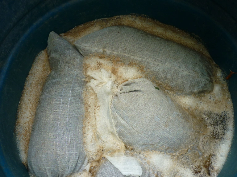 4. หมัก: ปิดฝาภาชนะให้สนิท แล้วปล่อยทิ้งไว้ประมาณ 24 ชั่วโมง เพื่อให้ธาตุอาหารจากมูลสุกรละลายออกมาในน้ำ