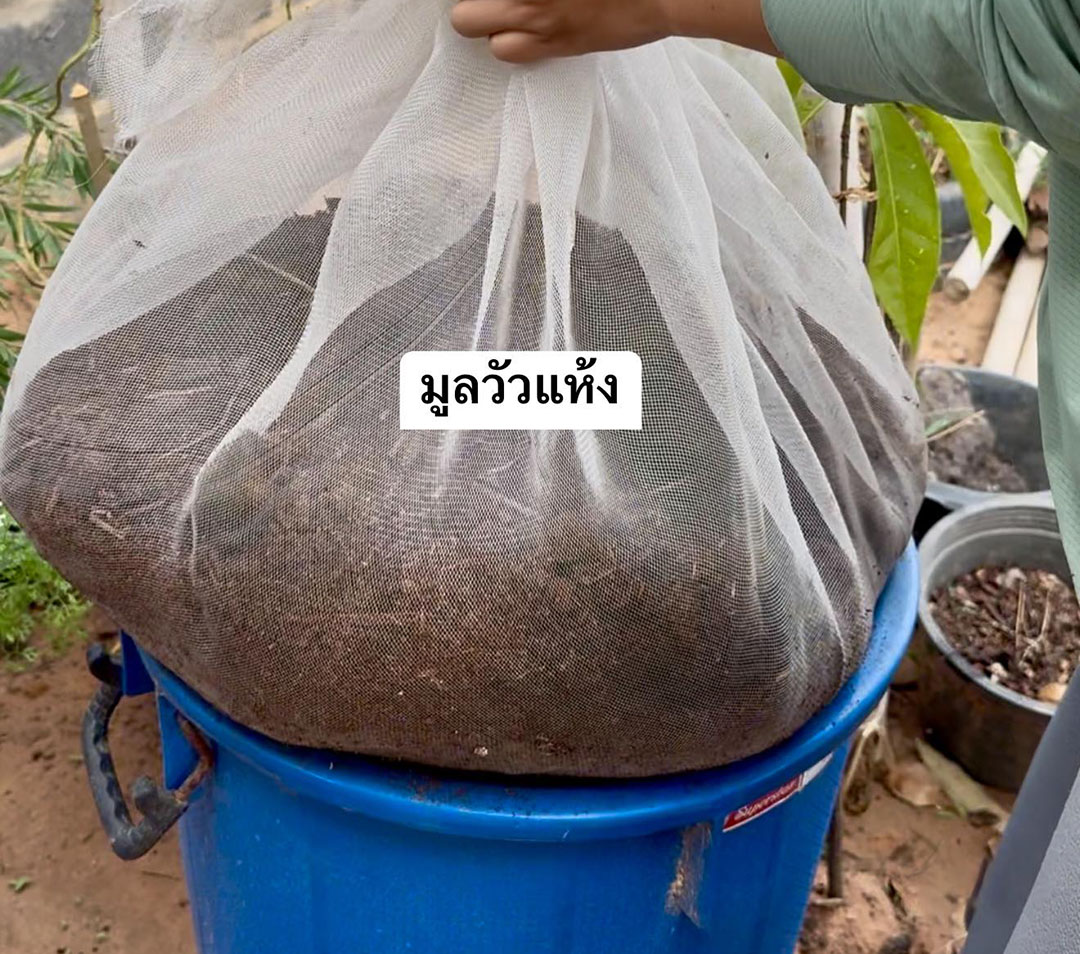 มูลวัวแช่น้ำละลายธาตุอาหารและสารอินทรีย์ที่เป็นประโยชน์ต่อพืช
