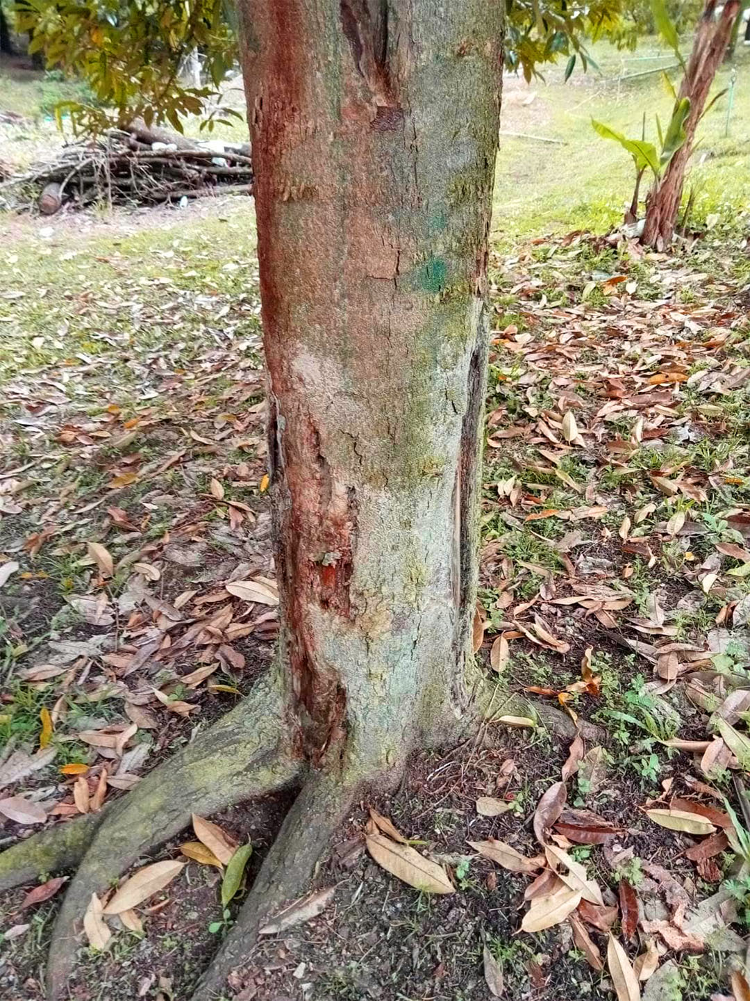 - ในกรณีที่รุนแรง แผลอาจลุกลามจนรอบโคนต้น ทำให้ท่อน้ำท่ออาหารถูกทำลาย