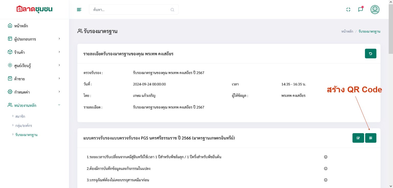 1.ระบบ QR Code สำหรับอ้างอิงใบรับรองมาตรฐานเกษตรอินทรีย์แบบมีส่วนร่วม PGS